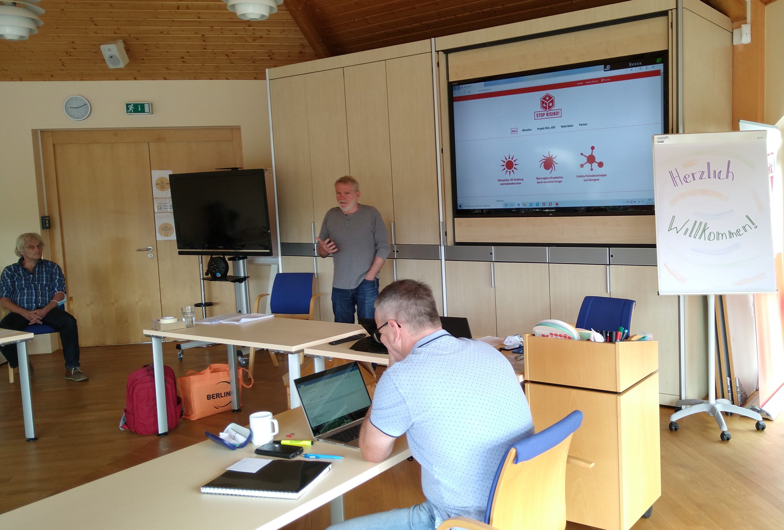 Thomas Hentschel stellte das Klim_AGS-Projekt bei einer IG BAU-Betriebsräteschulung in den Räumen der GJEW e. V. in Berlin vor. Das Thema Hitze und UV-Strahlung fand großes Interesse bei den Betriebsräten aus dem Bereich Bauhauptgewerbe und Facility Management.